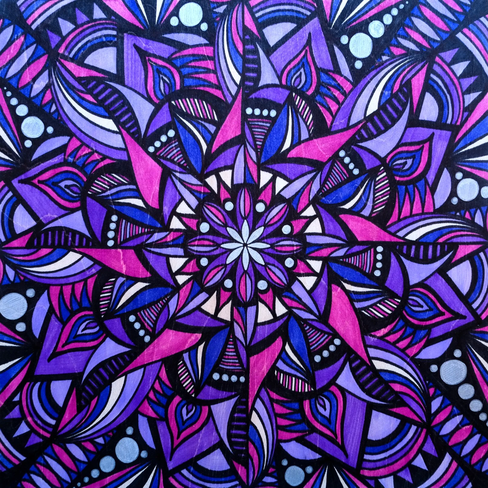 This project came out of an open-ended homework assignment for the Building Resilience in Body, Mind, and Spirit course at The Center for Justice and Peacebuilding 2017 Summer Peacebuilding Institute. Each piece represents an individual chakra, hand drawn on raw wood in the style of a mandala, and accompanied by a haiku representative of its unique aspects.